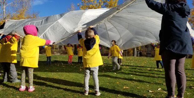 Here at the Community Kindergarten program we are fortunate to have access to excellent outdoor spaces. These include a fantastic playground, small hills for sledding, climbing and rolling,